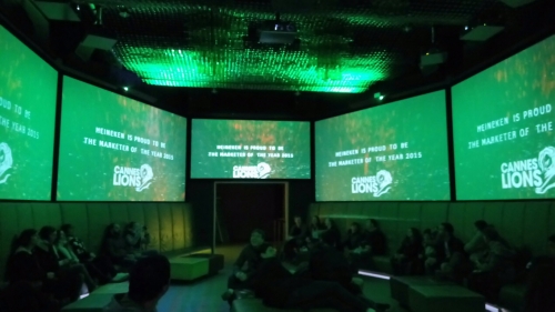 さて、ハイネケンの歴史や作り方を学んだあとは、美味しい飲み方も学ばなくてはいけませんよね!こちらの部屋(天井が泡のようになっています。)では、ハイネケンを美味しく飲む方法のレクチャーを受けます。教えてもらったあとは、みんなで一斉に乾杯です!
