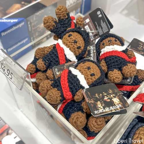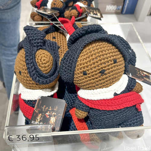 中でも注目したいものの1つは、クロシェ編みの人形。名画の衣装をまとったミッフィーはオランダらしく、お子様へのお土産にぴったりです。値段は、キーホルダー型のSサイズのものが14.95ユーロ(約2,400円)、ぬいぐるみサイズのものが36.95ユーロ(約6,000円)です。