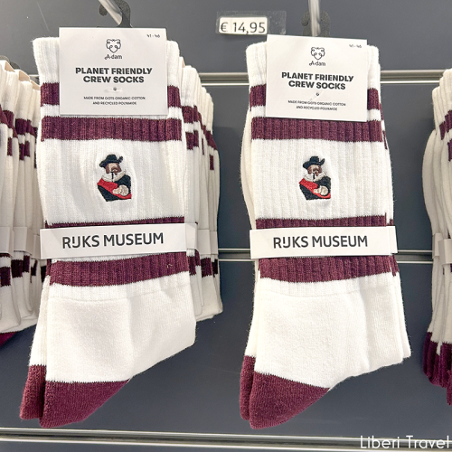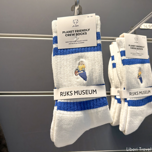 アムステルダム国立美術館で特に有名な2つの絵画・レンブラントの「夜警」と、フェルメールの「牛乳を注ぐ女」をモチーフにしたTシャツと靴下が販売されています。プリントではなく刺繍が施されており、オシャレさとユニークさを兼ね揃えた素敵な商品です。