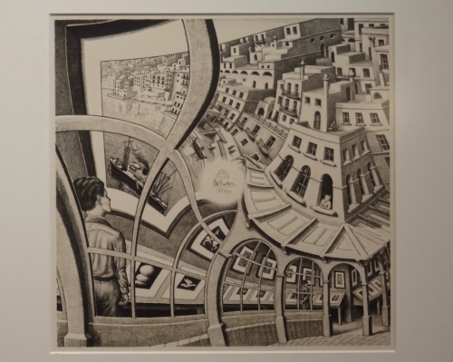 エッシャーの作品は美術館の1階と2階に展示してあり、1階では初期の頃の作品や幻想的な作品、風景画などをたくさん観ることができます。