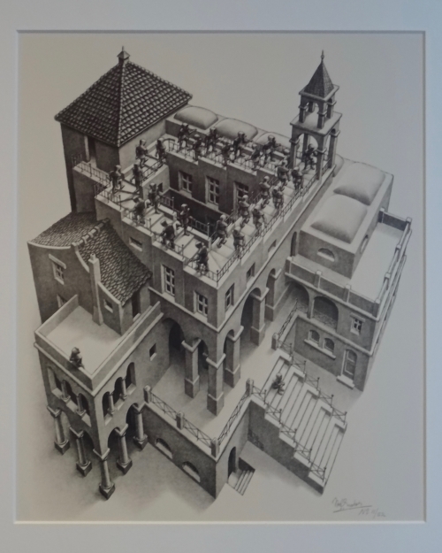 彼はオランダを代表するグラフィックアーチストで、木版画やリトグラフ、メゾチントによる数多くの作品を制作していますが、特に目の錯覚を引き起こすようなだまし絵(トロンプ・ルイユ)が世界的にとても有名です。