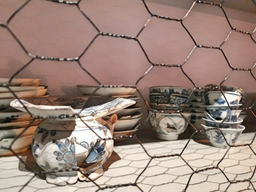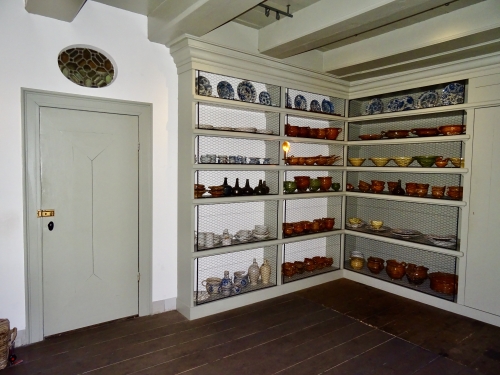 ママの部屋(Momkamer)には数多くの陶器が展示してあります。これらは2013年に博物館の拡張・修復工事中に、当時使用されていた汚水槽の中から発見されました。あまり綺麗な話ではないですが、当時はトイレに生ゴミや調理用品、壊れたり不要な陶器やグラスも捨てていた事が分かったのです。