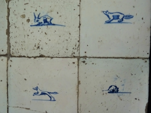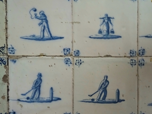 19世紀のキッチンルームの壁にはデルフトタイルが敷き詰められていて、よく見ると子供たちが遊んでいる様子や動物などが描かれているのが分かります。