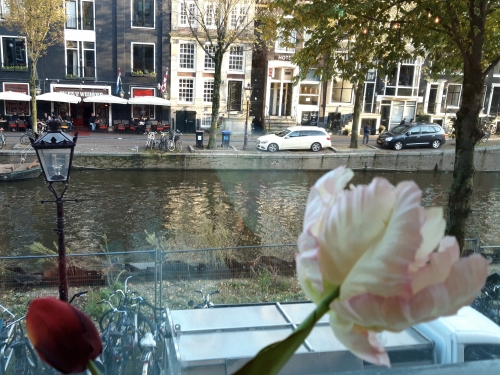 最上階の屋根裏に上がると、窓からアムステルダムの街並みが見られるので、ぜひその風景を眺めてみませんか!写真の左隅に少し見えるのはカトリックの聖ニコラス教会です。