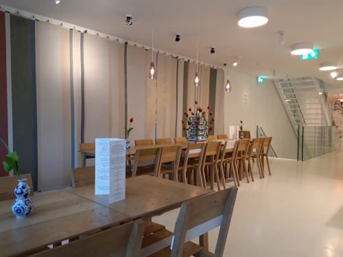 博物館のエントランスがある建物の2階にはモダンなカフェがあり、休憩をとりながら運河沿いの風景を眺めるのもいいですよ。カフェにも数点の陶器が展示してあるのでお見逃しなく!