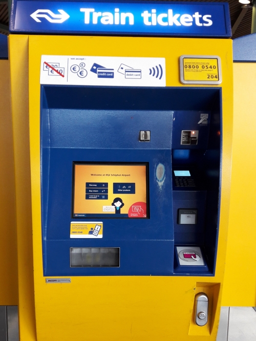 オランダの主要都市以外の駅は無人ですので、自動券売機を利用します。(有人の窓口がある駅にも自動券売機は設置されています)支払い方法は窓口で購入する場合と同じく、現金、デビットカード、クレジットカード利用が可能です。