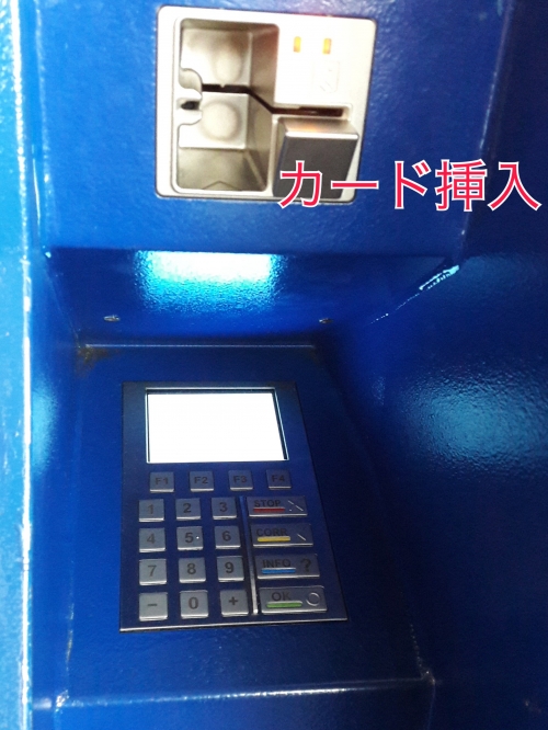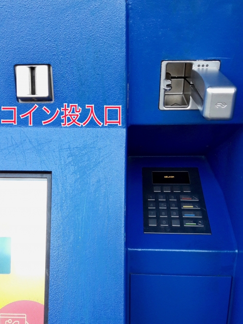 現金の場合は、タッチスクリーン右上のコイン投入口から入金します。ピッタリの金額でなくても、お釣りは出てきます。