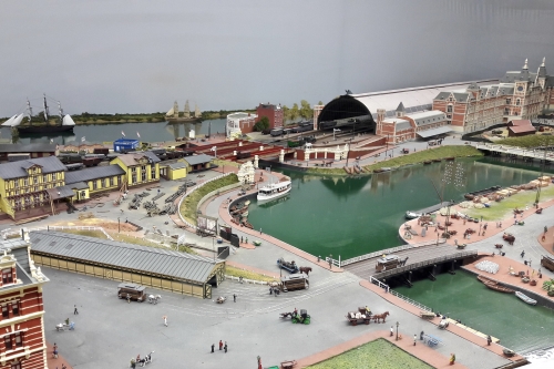 またこちらは1889年のアムステルダム駅とその周辺の様子を模型にして展示してあります。