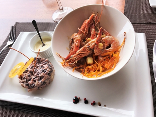 アンスバタにあるレストランLe Roof(ル・ルーフ)は、海の上にある大人気のフレンチレストラン。店内には床を四角く抜いてある場所があり、海の魚たちを眺めながら食事を楽しめます。見た目だけでなく、味も素晴らしい料理ばかりで、何度も足を運びたくなります。スタッフの接客もとても丁寧です。ディナータイムはライトアップされ、ランチタイムとはがらりと雰囲気が変わります。