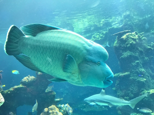 1,000種類以上の魚やサンゴを見ることができるヌメアの水族館。一番のおすすめは「光るサンゴ」の水槽です。暗闇の中で蛍光を発するサンゴたちの水槽は幻想的で、それはまるで宝石箱のようです。ラグーン水族館最大の水槽では、ユニークな顔の「ナポレオンフィッシュ」に出会えます。