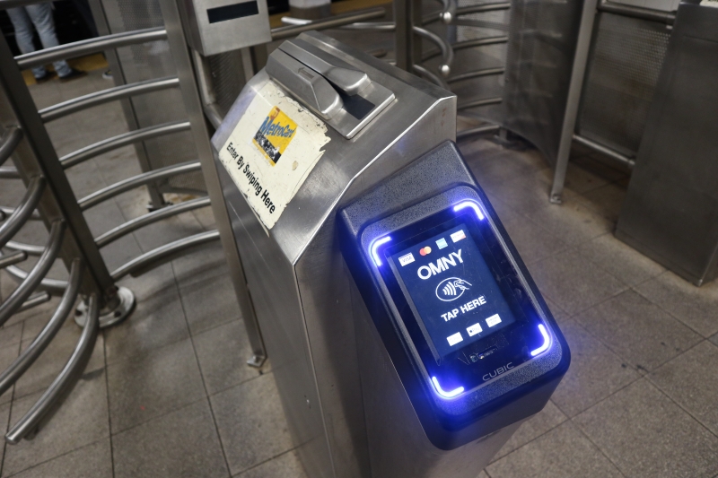 • 写真:bluemoonタッチ決済対応のクレジットカードやデビットカードをかざすだけの運賃支払いシステム「OMNY」