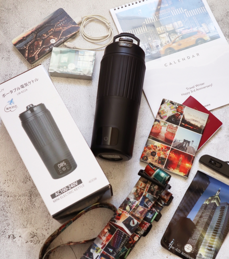 ホテルの部屋でお湯を沸かしたい人には、海外対応のトラベルケトルが便利。筆者愛用のケトルは550mLをわずか5分で沸かせるうえ、コンパクトでスーツケースにもスッキリ収まります。Amazonで5,000円ほどですが、海外旅行には本当に重宝しますよ!