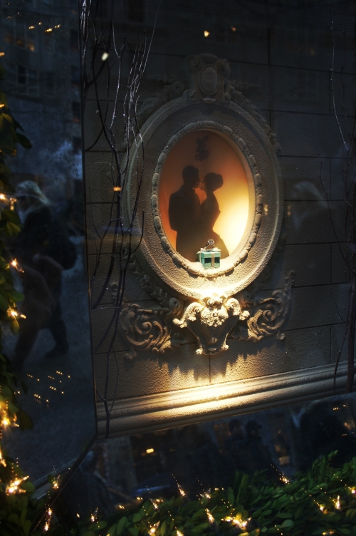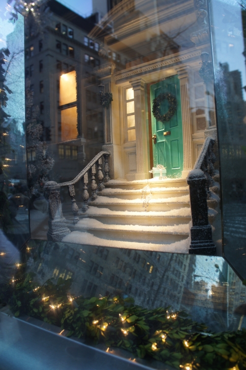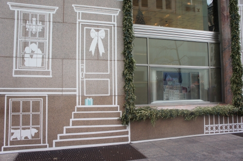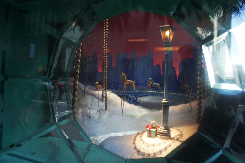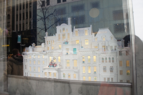 小さなウインドウの中には、アパートメントが立ち並ぶ雪降るNYの街並みと、部屋の窓に散りばめられたティファニーのジュエリーが何とも不思議なクリスマスシーンを作り出しています。