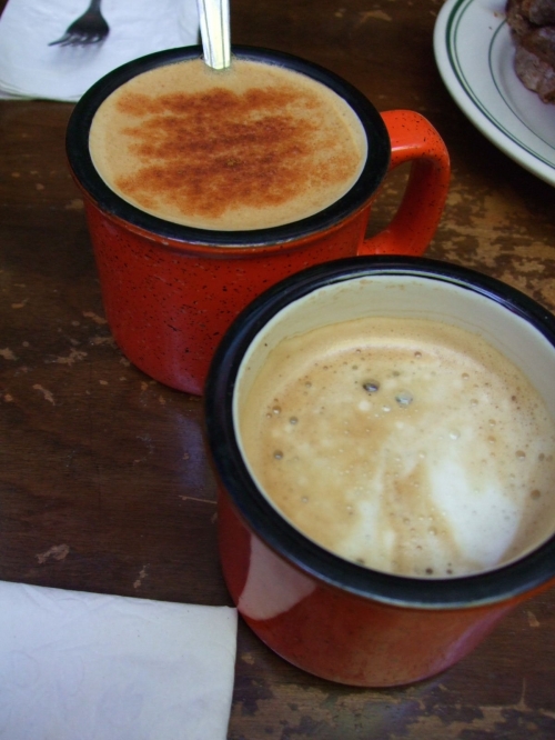 • 写真:bluemoonMUDSPOTのアップルサイダー(奥)とカフェラテ(手前)