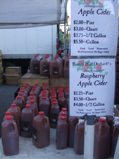 14丁目のユニオンスクエアにあるファーマーズマーケット(グリーンマーケット)では、秋冬の季節になると、たくさんのリンゴと共に、リンゴにちなんだ飲み物や食べ物が売られています。