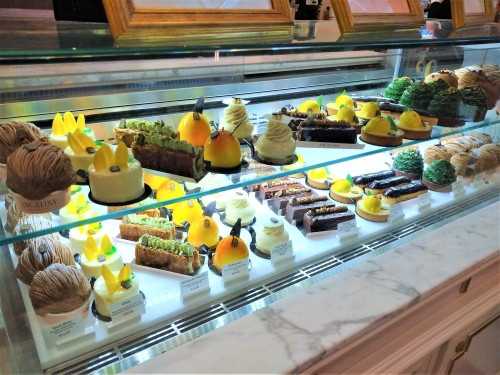 エントランスを入ってすぐ右手にあるショーケースには、見た目も美しいアンジェリーナのスイーツがずらり。眺めているだけでも目の保養になりそうです♡ テイクアウトの場合は、ショーケース横のレジで、希望のお品と個数を店員さんに伝えましょう。