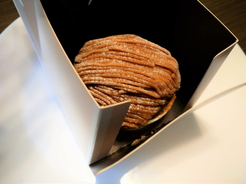 モンブランのような形が崩れやすいスイーツでも、専用のボックスがしっかりホールドしてくれるので、きれいな状態で持ち帰りが可能。さらにペーパーナプキンやフォーク・ナイフが付属しているので、ホテルのお部屋等でもいただきやすく、旅行者には助かりますね。