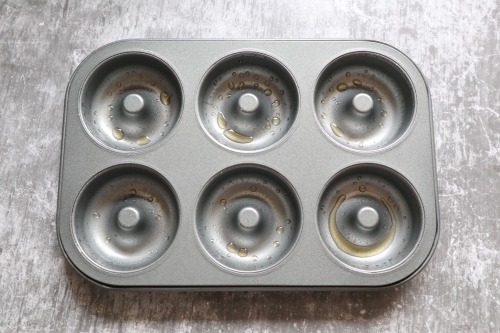 作り方⑤の焼き型にオイルを塗る場合、オリーブオイルスプレーを使うと大変便利です。オイルスプレーがない場合は、オイルを焼き型にキッチンペーパーやハケなどを使ってあらかじめ塗っておくと、焼き上がった時にスパゲッティドーナツを型から外しやすく、食感も外側がカリッとするのでおすすめです。