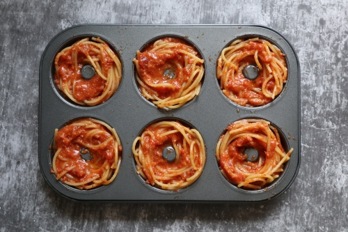 • 写真:bluemoon作り方⑤ スパゲッティを型に入れる
