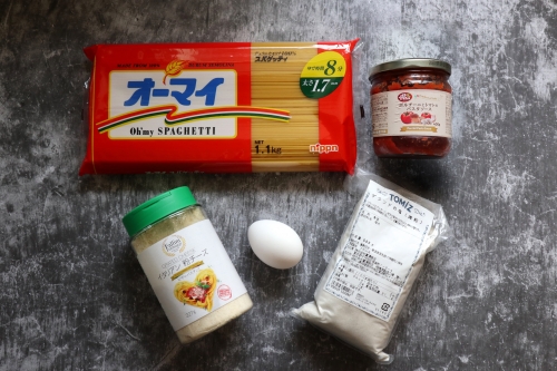 • 写真:bluemoon「スパゲッティドーナツ」の材料 ※直径65mmのスパゲッティドーナツ6個分