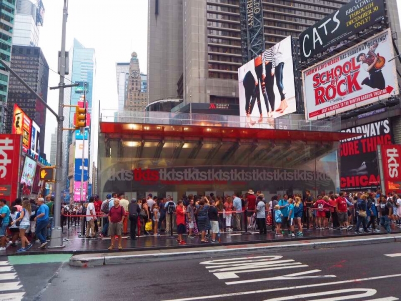 チェックを終えたら、ブロードウェイでも目立つ、赤いtktsと書かれたチケット売り場に行き、並びます。tktsは確かにディスカウントされた値段でミュージカルを観ることができますが、売り切れや、もっと安いと思っていたのに!という事態が人気のミュージカルであればあるほど起こります。