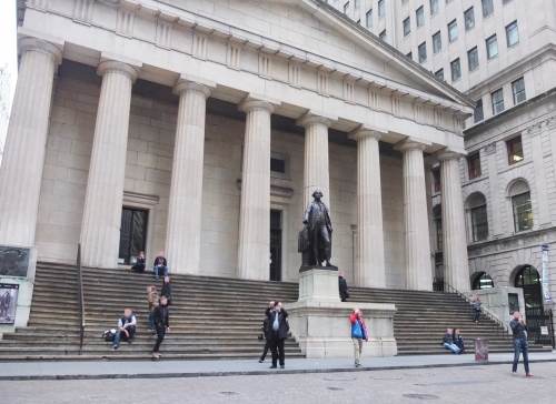 世界金融の中心地。そして要でもあるNY証券取引所。平日は、忙しく働くビジネスマンが闊歩している場所です。