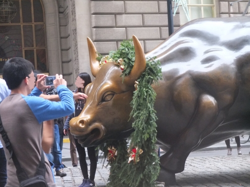 その前にあるフェデラルホールも忘れずに、ご覧ください。アメリカ初代大統領ジョージ・ワシントンが大統領就任演説を行った場所です。ついでに、触れると金運がアップすると言われている「チャージング・ブル」もお見逃しなく!