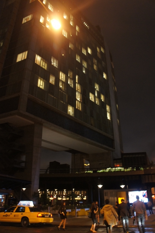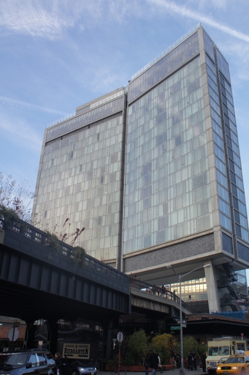2本のコンクリート柱でハイラインをまたぐように建つのは、高級ホテル“Standard Hotel”(13丁目)。