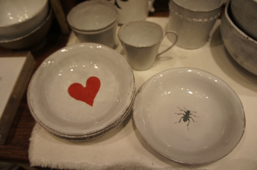 落ち着いた花柄のマグカップや、パラソルの小物入れなど、綺麗目な食器が多いのですが、以前にはこんなシュール?!なお皿も売られていてビックリしました。今にも虫が動き出しそうですね!