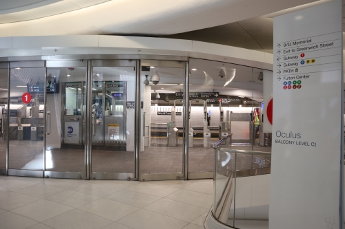 地下鉄1番線の「ワールドトレードセンター駅」とオキュラスは直結していますので、地下鉄で「ワールドトレードセンター駅」まで来ると、改札出口を出るとすぐにオキュラスが見えますのでわかりやすいです。