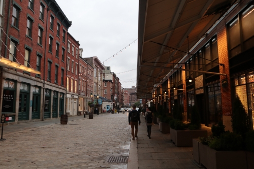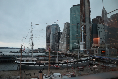 マンハッタンの東側のイーストリバー沿いに、「サウスストリートシーポート」があります。古くからの倉庫街で、歴史を感じる建物が多く、14の建物と川沿いのピアに、ショップやレストランが点在しています。
