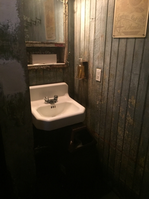 Restroomは店内奥にありますが、操舵室の丸い窓を取り付けた扉が素敵でインテリアの一つになっています。