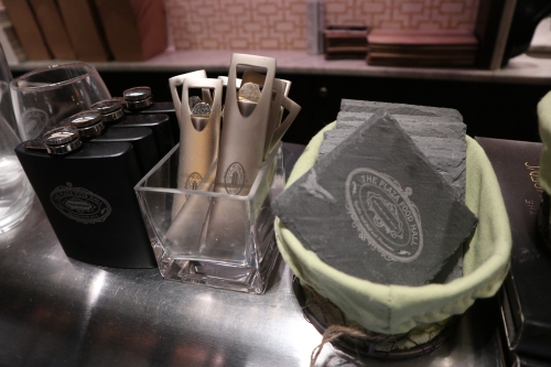 • 写真:bluemoon左からフラスク 20ドル(約2,300円)、栓抜き 20ドル(約2,300円)、スレートコースター 10ドル(1,150円)