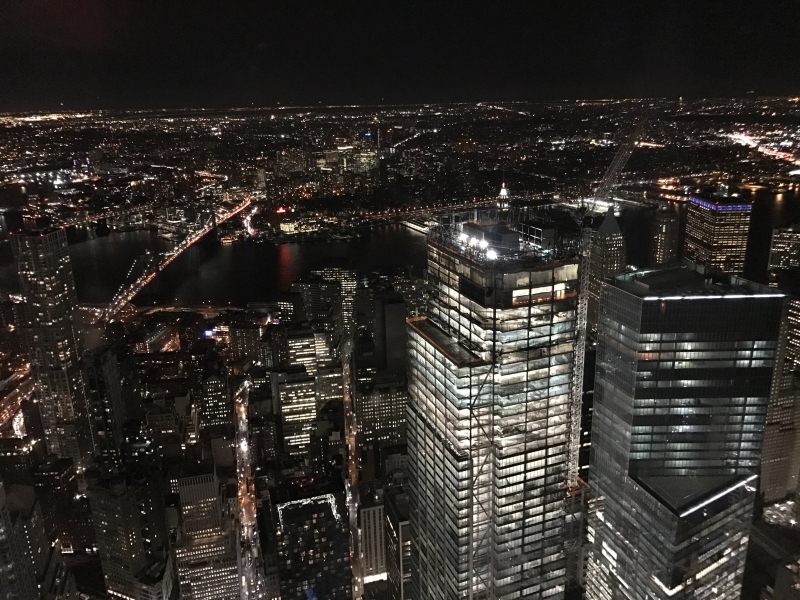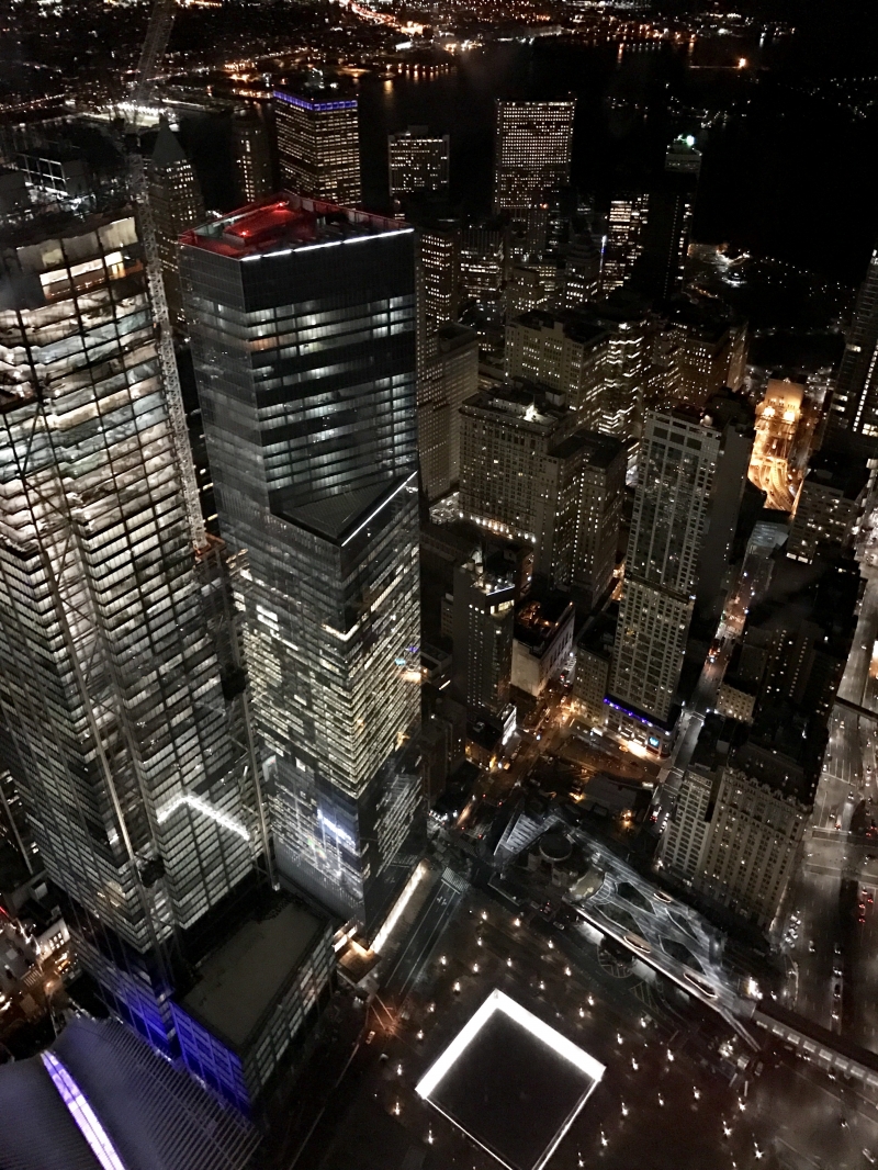 ワンワールド・トレードセンターはマンハッタンの南端に建ち、北方向の高層ビル群を一望できます。まるでパチンコ玉のように車がくるくる、こぼれ落ちるように移動しているように見えます。