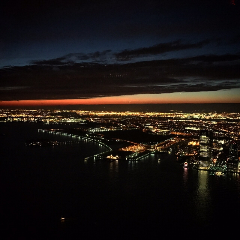 ワンワールド・トレードセンター内にあるレストランに続いて、ニューヨークで2番目に高い所に位置するバーと言われています。夜の10時頃ですが、まだ地平線が夕陽のように明るく見えます。まだ明るい夕方の時間帯17時頃は壮快な景色が楽しめそうですが、やっぱり夜が断然おすすめです!