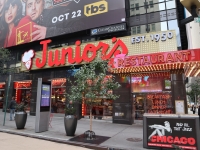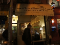 写真:bluemoon ニューヨーク・タイムズスクエアにある「ジュニアーズ チーズケーキ 49丁目店」 |  写真:bluemoon 「ジュニアーズ チーズケーキ 49丁目店」店内の様子 |  写真:bluemoon チョコレートケーキ 6.5ドル(約715円) |