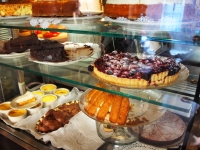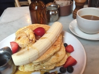 写真:bluemoon 「カフェ・ランターナ」の店内にあるドルチェのショーケース |  写真:bluemoon Ricotta Pancakes 17ドル(約1,870円) |  写真:bluemoon Coffee 3.5ドル(約385円) |