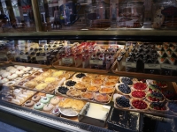 写真:bluemoon ドミニクアンセルベーカリー 店内のケーキショーケース |  写真:bluemoon ドミニクアンセルベーカリー店内 |  写真:bluemoon DKA(クイニーアマン)5.75ドル(約632円) |