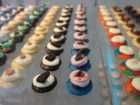 写真:bluemoon 夜遅くまで開店しているお店だったので、夕食後にデザートを食べに来るお客さんでいつも賑わっていました。 |  写真:bluemoon ドミニクアンセルベーカリー 店内に飾られた、クロナッツのイラストポスター |  写真:bluemoon ミニマドレーヌ 7ドル (10pc) (約770円) |