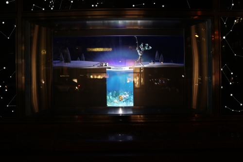 2017年のティファニーのショーウィンドウは、クラフトマンシップに、ウィットとユニークなストーリーを絡ませ、シルバーメッキされた木製のフィギュアたちが、プレイフルにジュエリーを運ぶ姿が愛くるしい作品になっています。