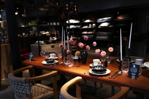 美しいテーブルコーディネートは見ているだけでも刺激を受けます。フレンチカフェやフラワーショップも併設されているので、味、音、香りなど、五感に訴える空間になっています。