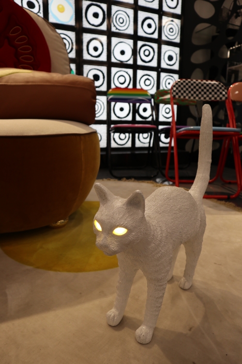 店内でひときわ目を引くホットドッグみたいなソファや、充電式の目が光る猫の置き型ライトなど、「何これ?!」と思わず触りたくなる商品が色々あリます。