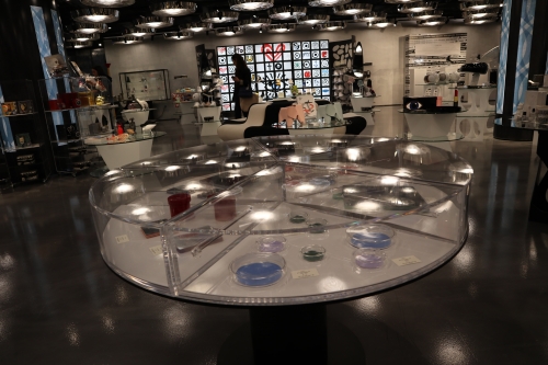天井に無数に設置された照明が地面にも反射し、店内全体が白い水玉模様でおおわれているような雰囲気。店内で撮影をすれば、ファッション誌に登場しそうなフォトジェニックな写真が撮れそうです。