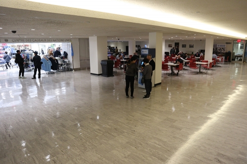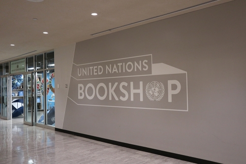 地下1階には、ギフトショップや郵便局、書店があり、国連グッズや、国連オリジナル切手やはがきを購入することができます。併設されているカフェではコーヒーを飲んだり軽食をとることもできます。