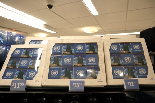 地下フロアにはギフトショップ、ブックショップ、郵便局、カフェがあります。ショップの売上げは国連の活動として利用されるので、グッズを購入すると国際貢献もできてしまいます。それでは、おすすめのお土産をご紹介します!