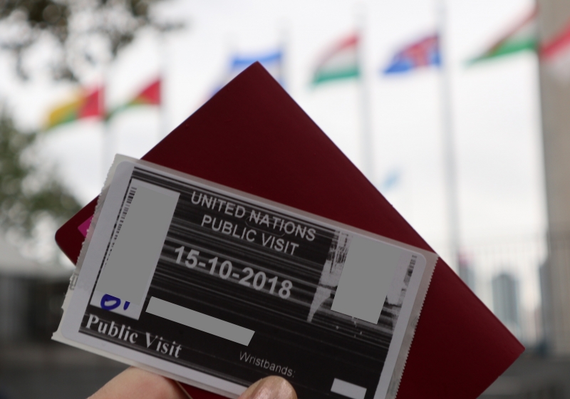 ビジターセンターに入るには、国連ビル正面入口の道向かいにある「ビジターチェックインオフィス」で、パスポート提示と顔写真撮影を行い、入館シールをもらわなくてはなりません。