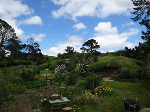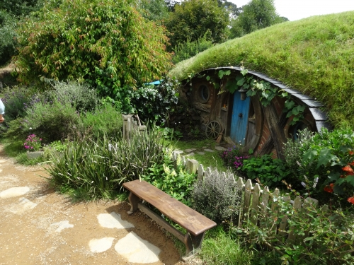 そこを抜けると目の前に広がるのは、映画でみた可愛い、丸いドアが付いた家々、手入れの行き届いた草花たち、まさしくホビット村(小人族の村)です。この感動は写真だけではなかなか伝わらないと思いますが、映画に出てくる主人公たちが住んでいるのではないかと錯覚してしまいそうです。