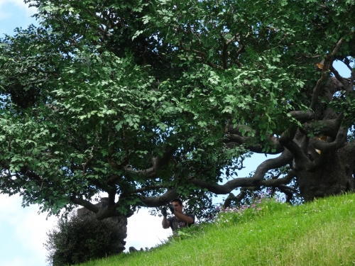 生き生きとした緑にも秘密があります。それもそのはず、ここにある草花は全て自然のもので、今でも4~5人の従業員が毎日お手入れをしているんです。野菜も当然本物ですよ。そんな村に唯一人工の緑があります。そうです、袋小路にあるフロドとビルボの家の丘の上に生えている一本の木。