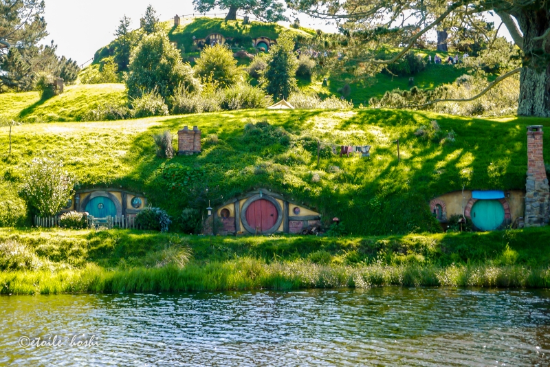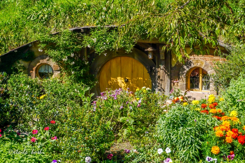 ホビット族の家は丸い扉と丸い窓が特徴的で、家の周りには緑と色彩豊かな花々や畑などがあり、のどかな田園風景のとてもかわいい村です。袋小路屋敷(ビルボとフロドの家)、サムの家、パーティーツリーなど映画で出てきたセットにテンションが上がってしまいます♡