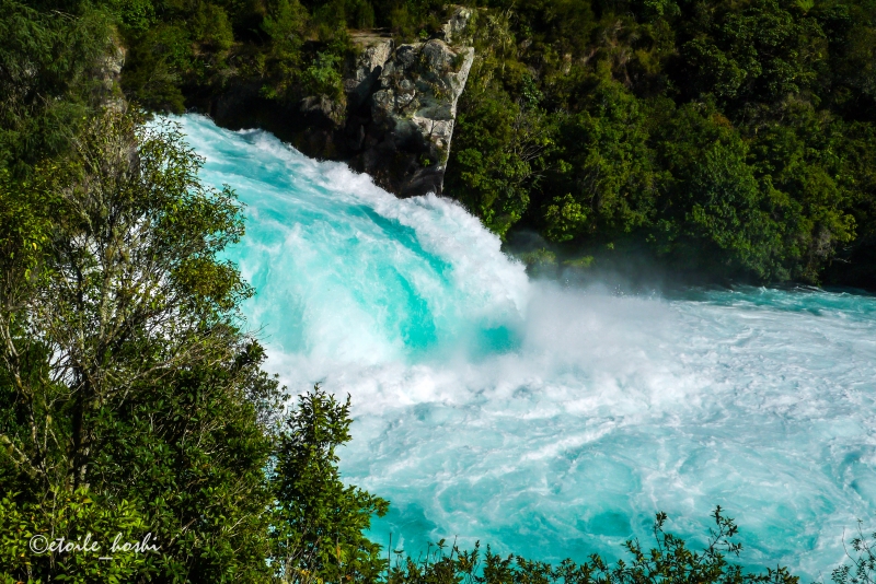 タウポ湖から流れるワイカト川にあるHuka Falls(フカ滝)はエメラルドグリーン色がキレイな迫力満点の滝です。タウポの街から約5kmの場所にあり車で10分も掛からずに行くことができます。